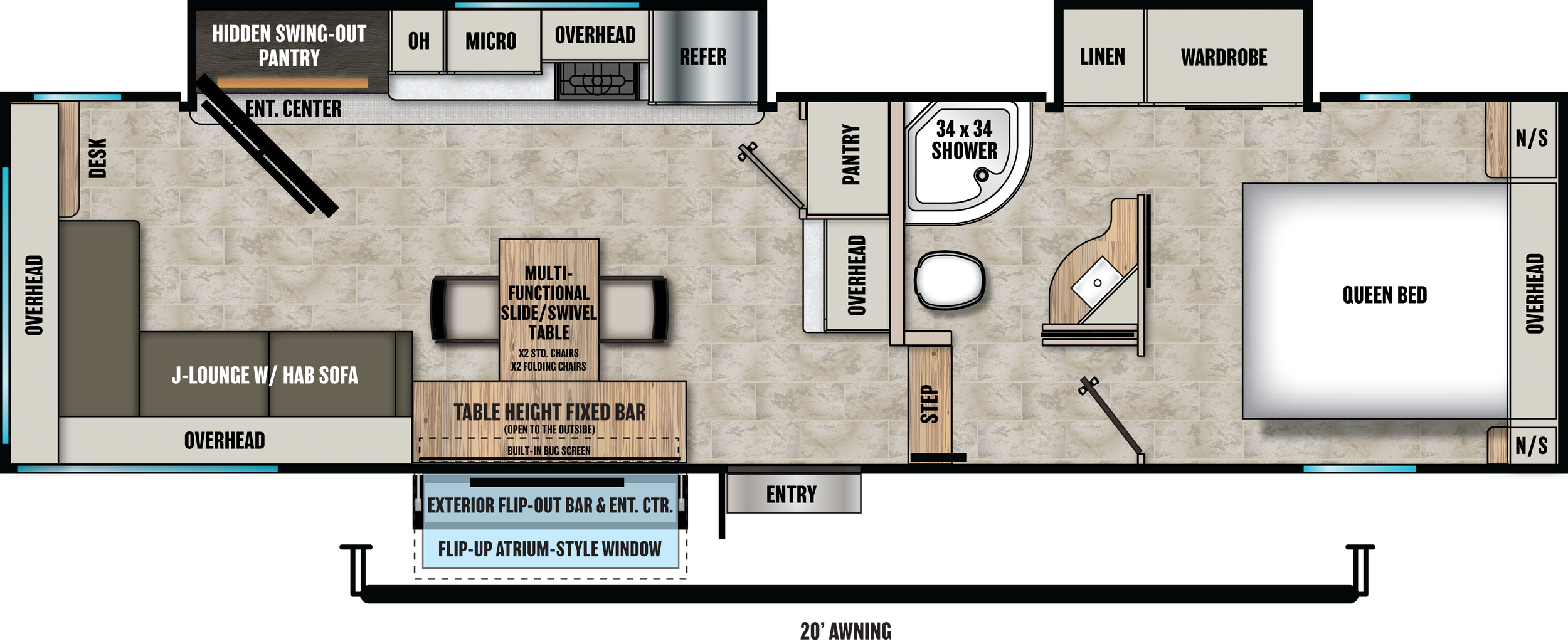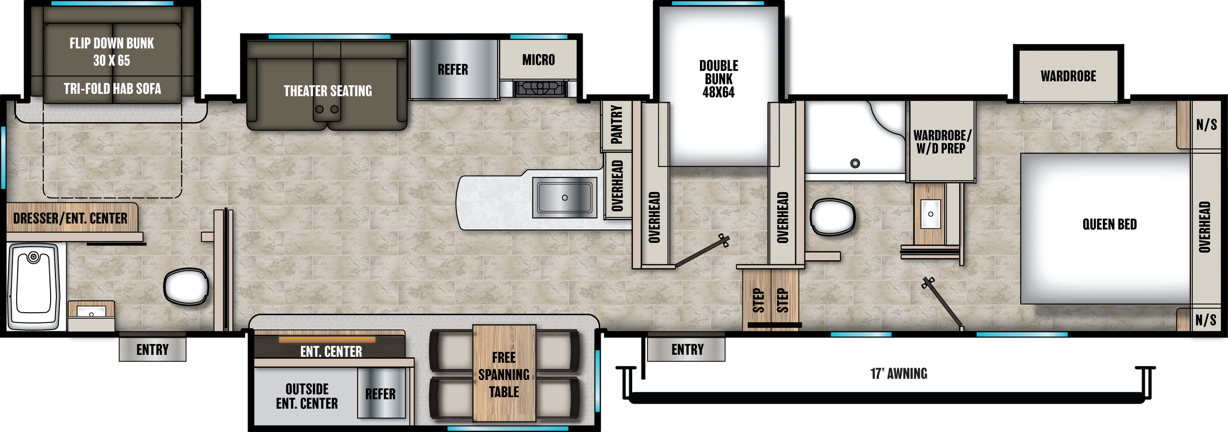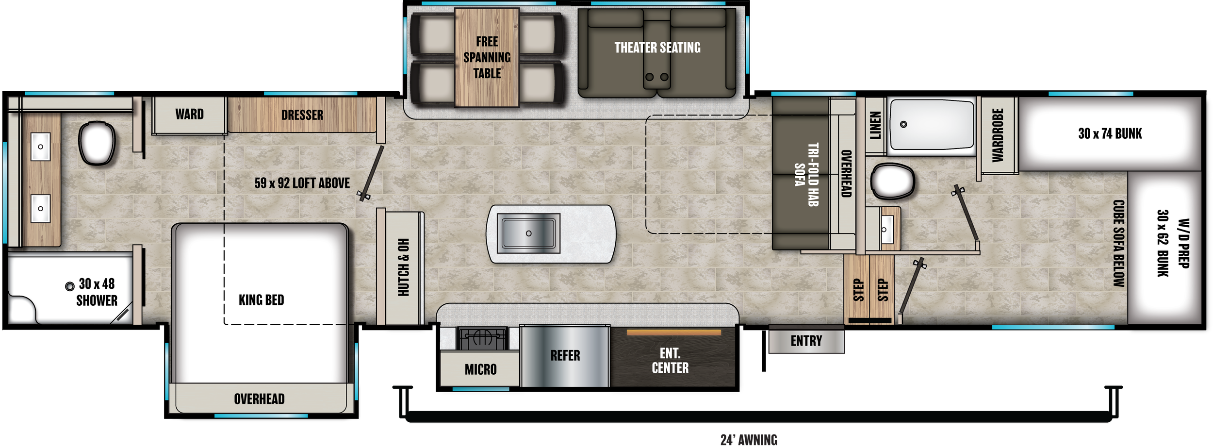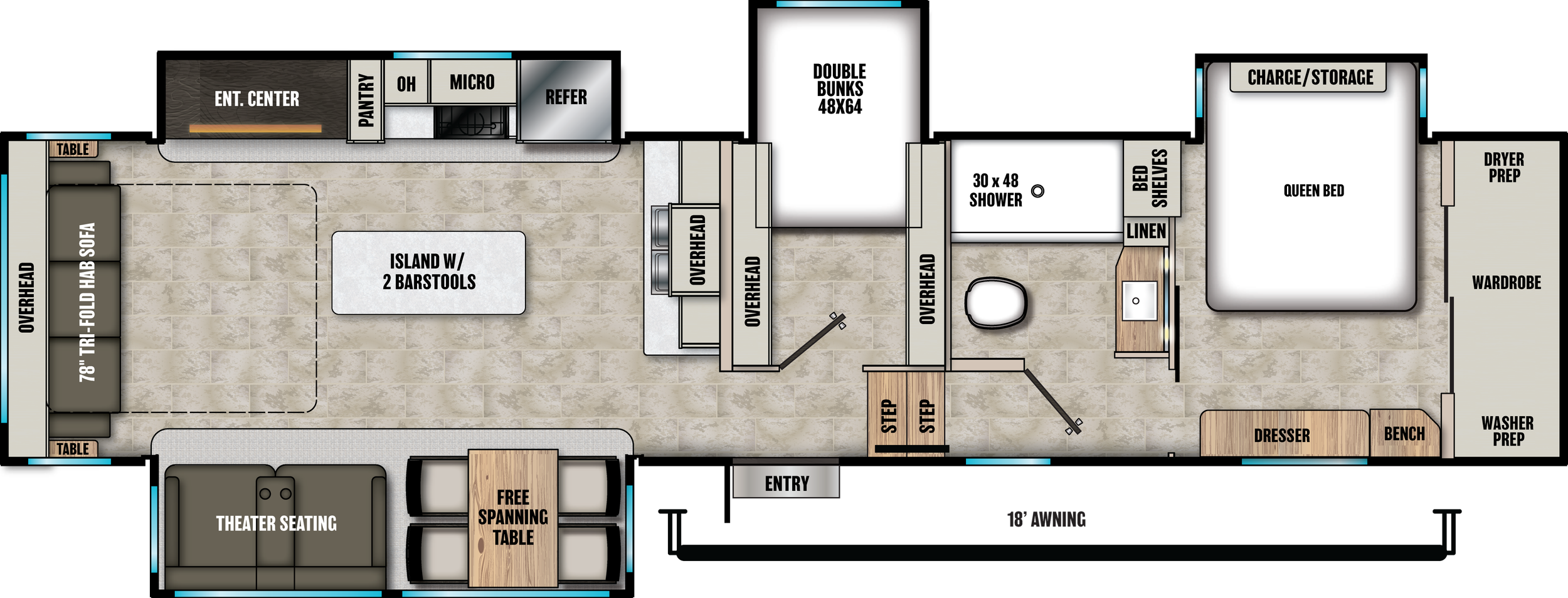 Chaparral Mid-Profile Fifth Wheels provide the perfect balance of affordable quality and comfort, with all the creature comforts experienced traveler’s desire. Its vast model lineup includes smaller couples designs up to three-bedroom, dual-bath, family-friendly solutions. Designed for 3/4-ton and 1-ton (or larger) pickup truck owners, all Chaparrals include stand-out features such as Azdel 6X™ vacuum-bonded walls, Weather Shield+™, Road Guardian +™, and Solar Source +™.