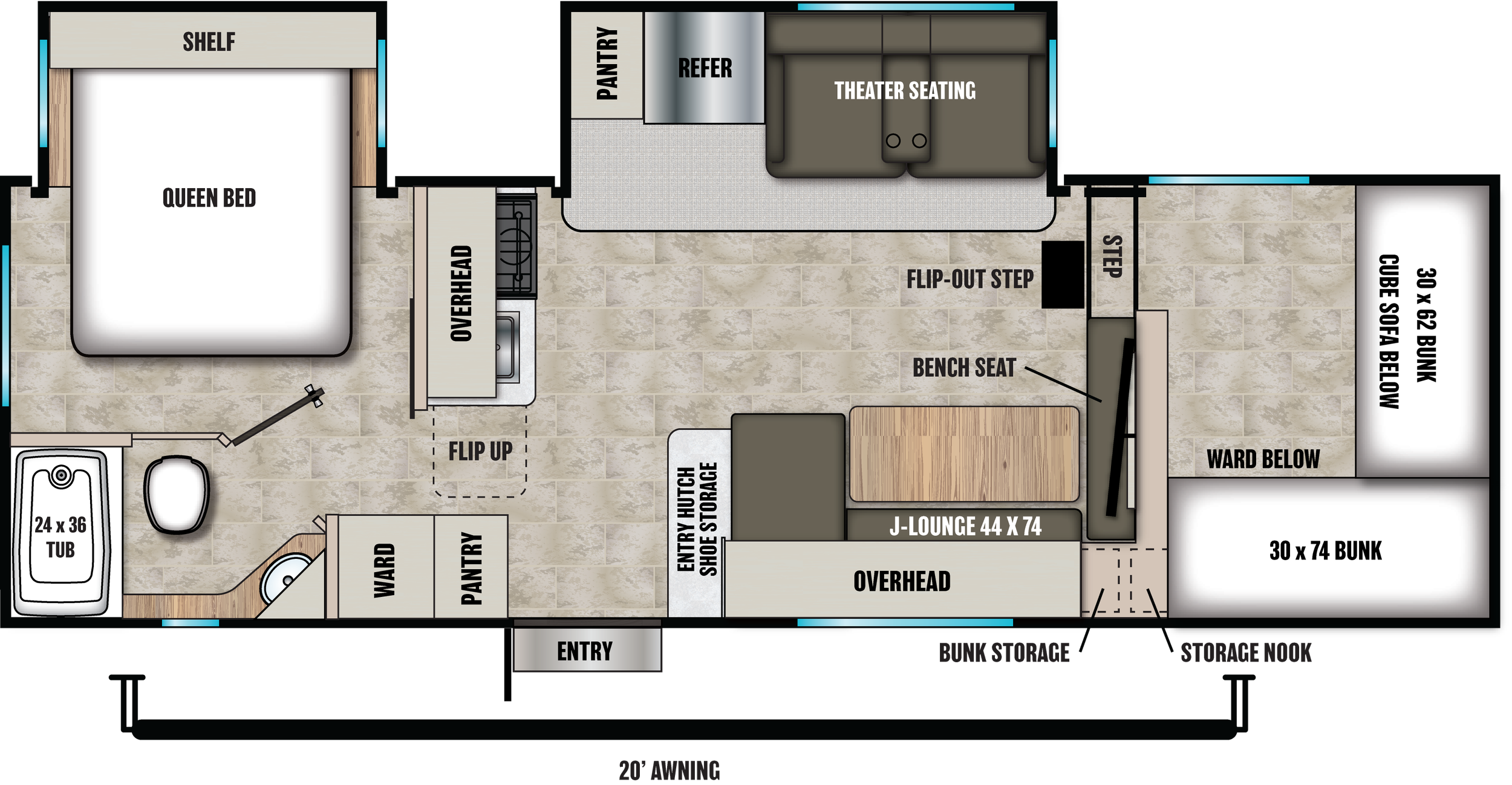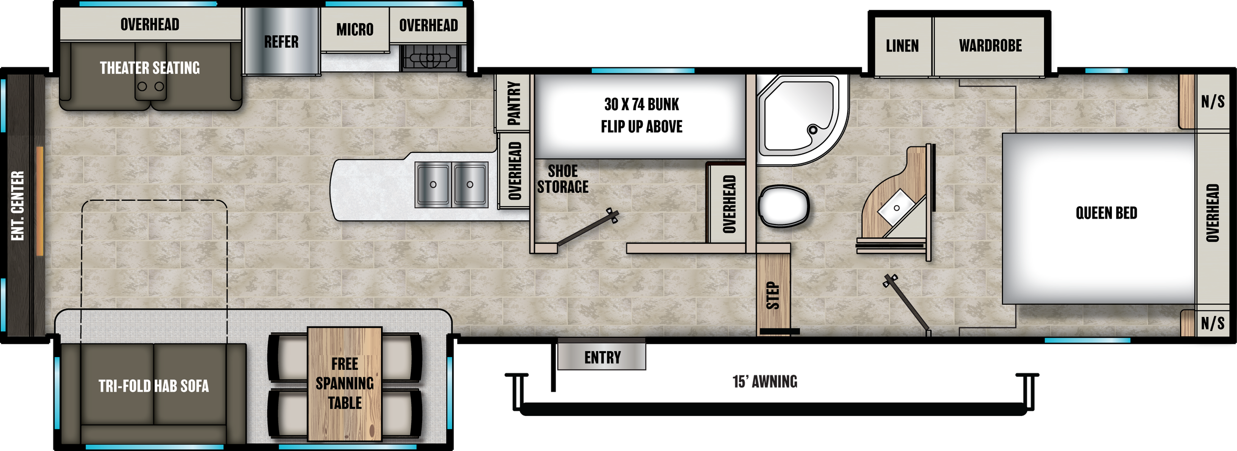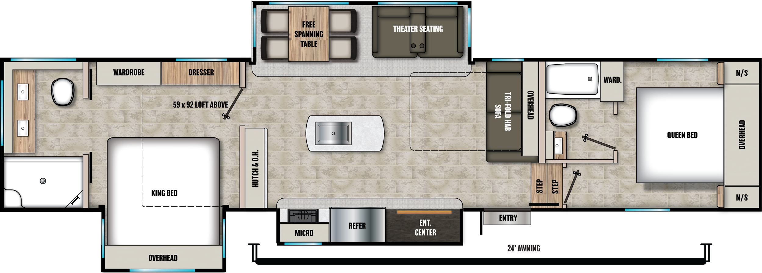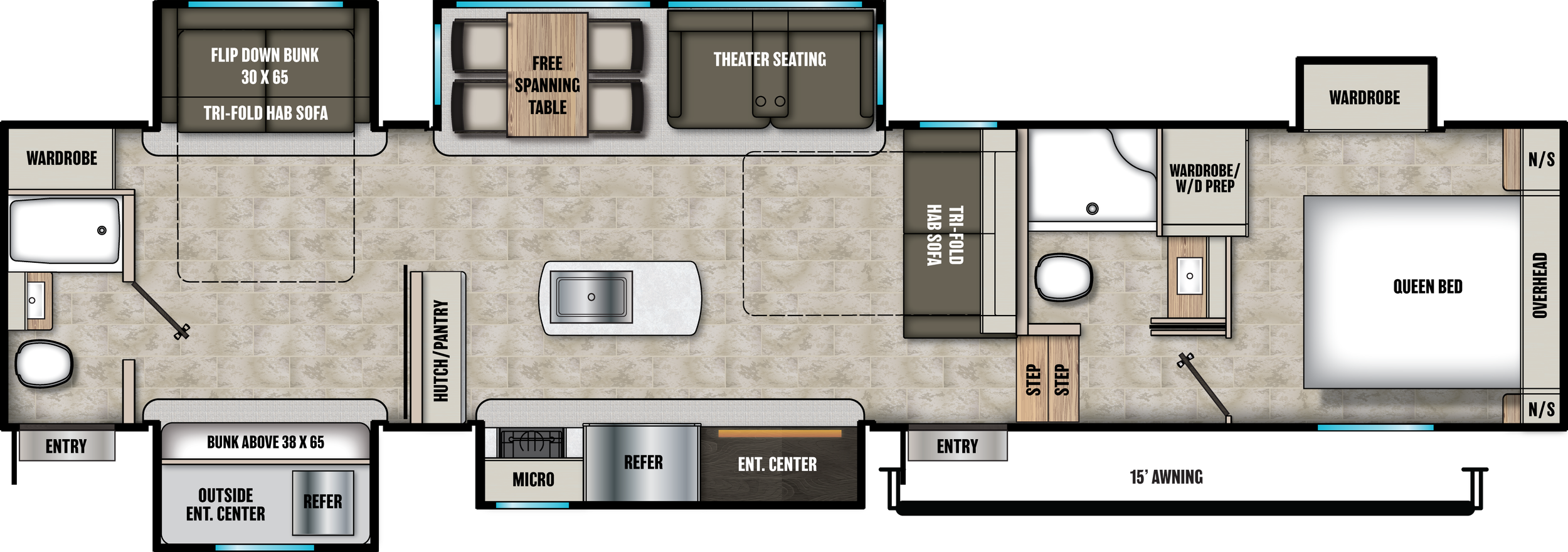 Chaparral Mid-Profile Fifth Wheels provide the perfect balance of affordable quality and comfort, with all the creature comforts experienced traveler’s desire. Its vast model lineup includes smaller couples designs up to three-bedroom, dual-bath, family-friendly solutions. Designed for 3/4-ton and 1-ton (or larger) pickup truck owners, all Chaparrals include stand-out features such as Azdel 6X™ vacuum-bonded walls, Weather Shield+™, Road Guardian +™, and Solar Source +™.
